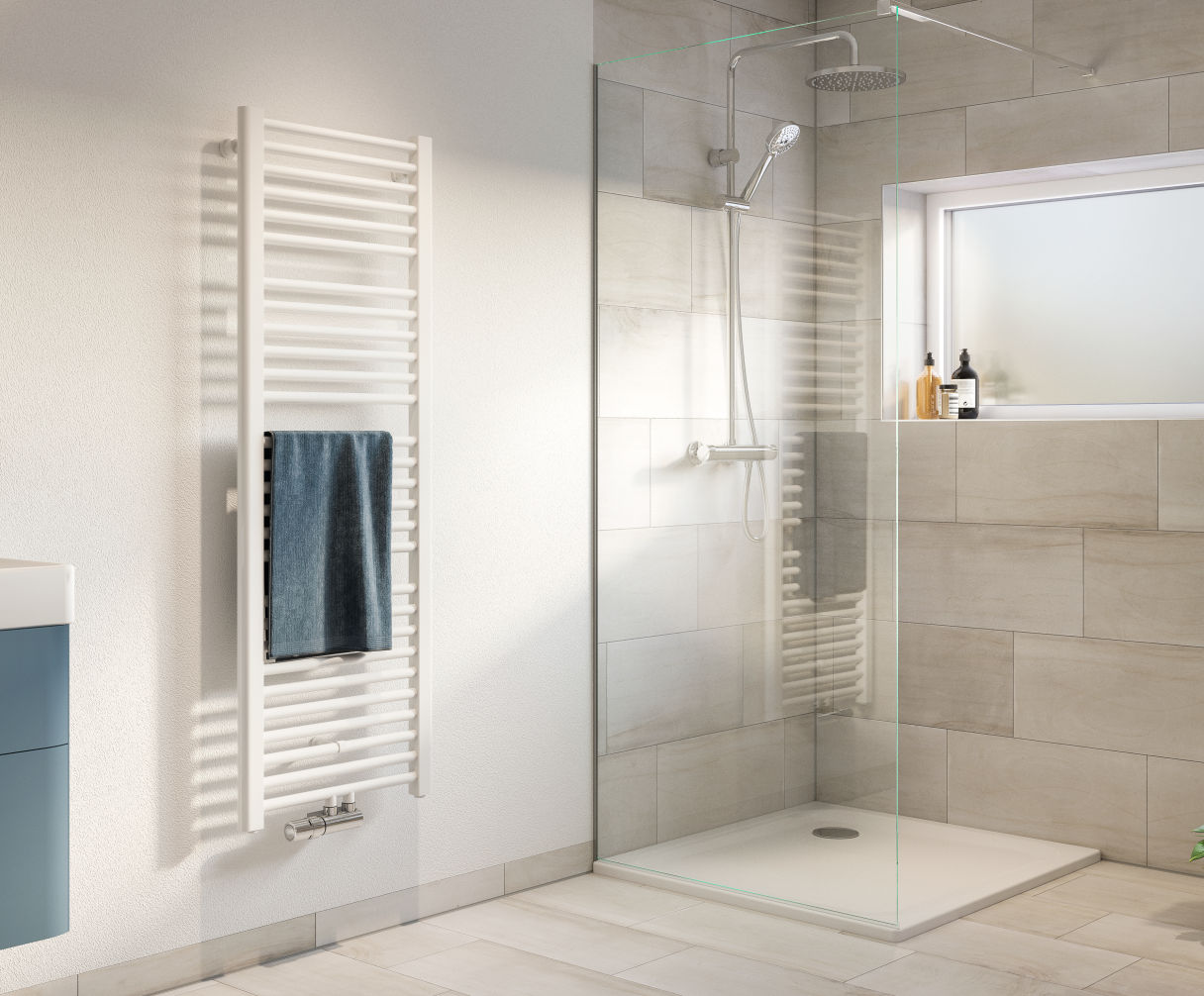 Serienmässig in Standardfarbe RAL 9016,Betriebsdruck: 10 bar / 1000 kPa,Lieferung montagefertig, inklusivekomplettes Befestigungs-Set undEntlüftungsventil (ohne Elektroheiz-einsatz). Maximal zulässigeBetriebstemperatur: 110 °C.